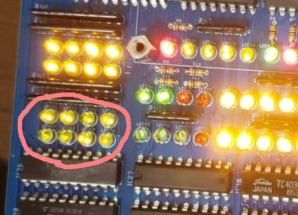 マニュアル通りにプログラムを書き込んでみたのですが、何度やっても入力した値がRAMに保存されません。まれに保存されますがほぼNGです。 さらに、データバス内容を表示するLEDが風前の灯火状態です。消えてしまうこともあります。 CPUクロックは手動にしたり停止しても変化なしでした。